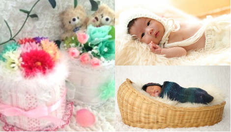 ・赤ちゃんのおむつを活かし、雑貨、お花、リボン等可愛いアイテムを使ってデコレーション。世界に1つのオリジナルアイテムを制作することができます。