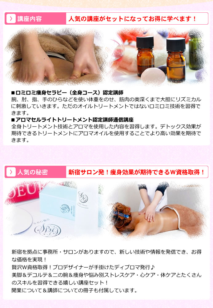 ロミロミ痩身テキスト/DVD/SBG®オリジナルオイル1本/認定筆記試験