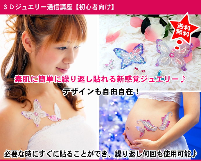 3Dボディジュエリーとは/単価について/特殊シートについて/技法/粘着/転写(レシピ付き)/グラデーション法/装着法/仕上げ法/各種技法の長所・短所/それぞれのポイント・コツ/色の使い方/施術シーンについて/保管方法/衛生について/備品の購入(仕入れ)方法
